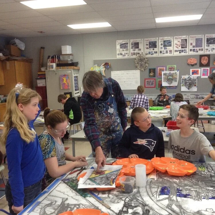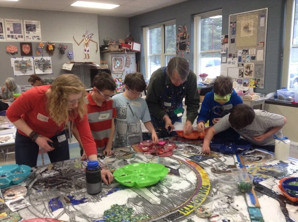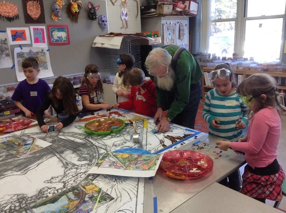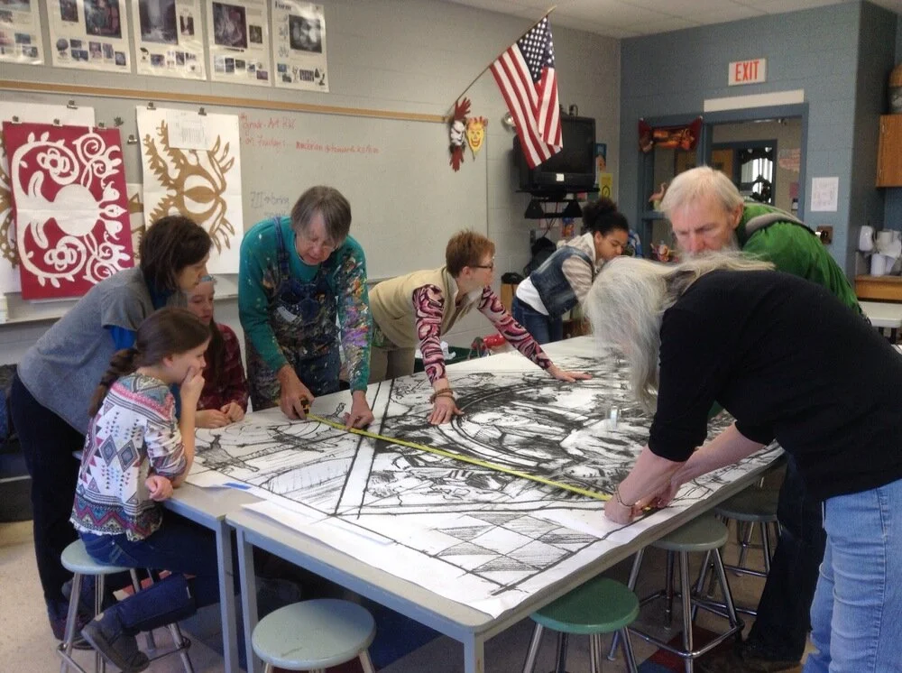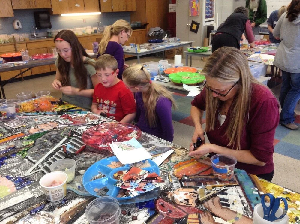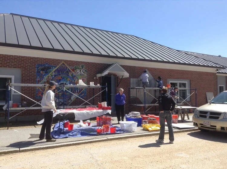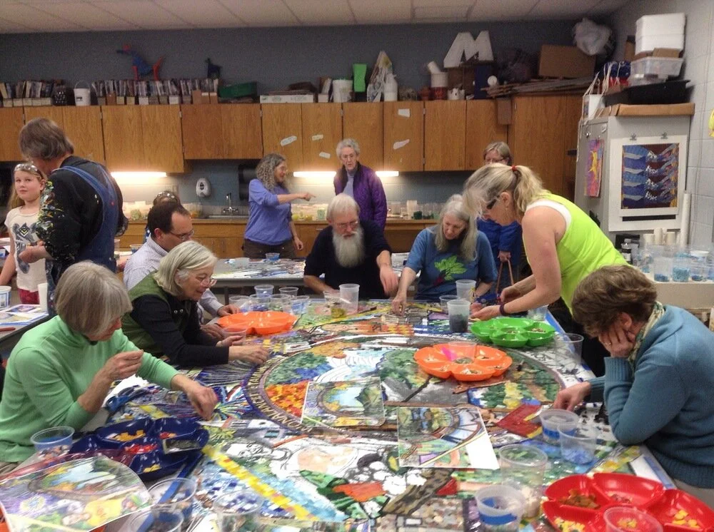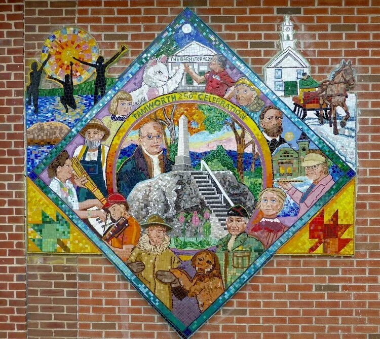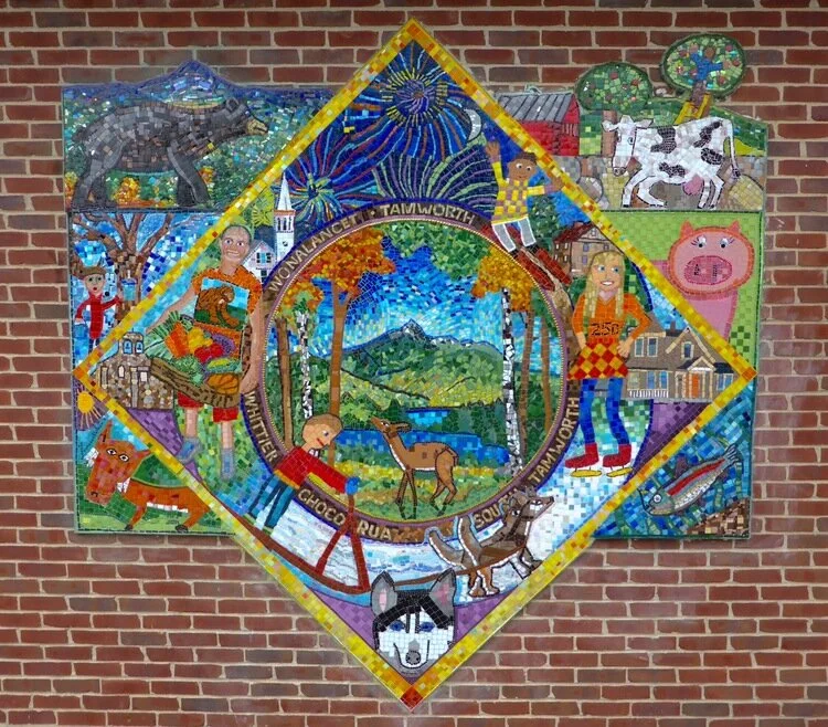 The Tamworth 250th Mosaic, a project of Arts Council of Tamworth, was created in 2016, Tamworth’s 250th year, by hundreds of children and adults and dozens of tireless volunteers working with mural artist David Fichter, Arts Tamworth director Juno Lamb, and Brett art teacher Melanie McBrian. The project was supported by The Tamworth Foundation, the K. A. Brett School, the Tamworth PTA, the Yeoman’s Fund for the Arts, the New Hampshire State Council on the Arts, The Other Store, BEAM Construction Associates, Inc., Club Motorsports, and all Arts Tamworth’s donors and sponsors.