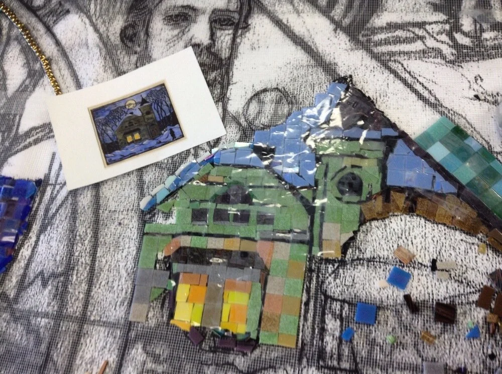 At the beginning, we asked the community what they felt should be represented in the mosaic. Dozens of community members send images and ideas, and every kid at Brett drew a picture of something they love in Tamworth. In conversation with us, David skillfully wove many of these drawings and images into the final mosaic design.